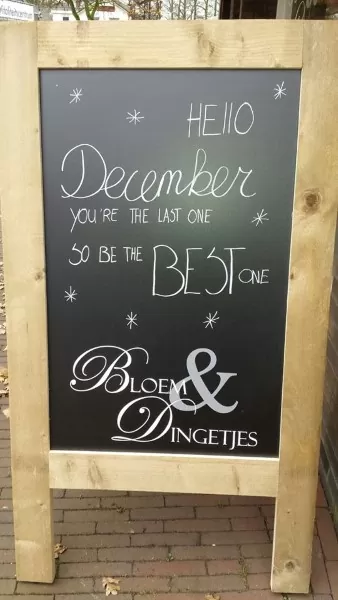 Nienke had dit stoepbord ontvangen bij de opening van de nieuwe zaak.